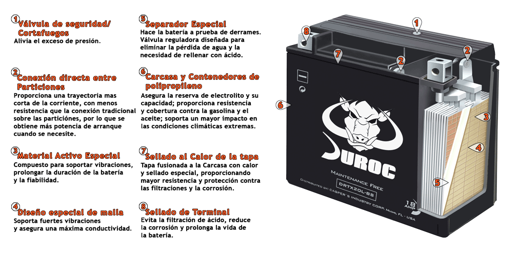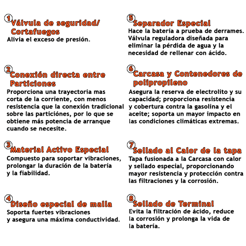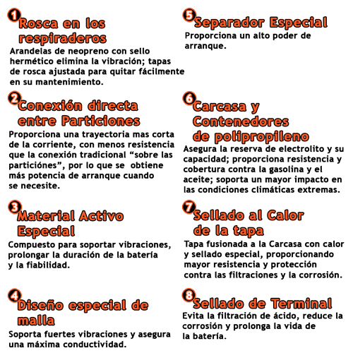 Esta tecnología basada en fibra de vidrio absorbente, es un diseño de batería avanzada que elimina la pérdida de agua.